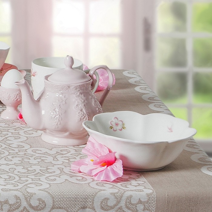 Изделия серии «Аморет» изготовлены из великолепной керамики, украшенной стильным узором. Необычная форма предметов придётся по душе всем ценителям современной посуды. Высокие эксплуатационные качества делают этот салатник удачным выбором для повседневного использования и сервировки праздничного стола.