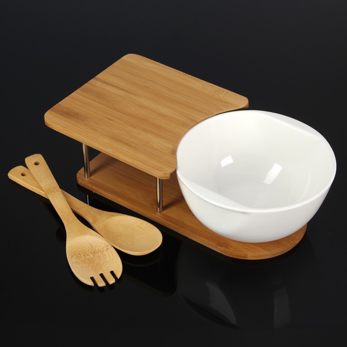 Салатник "Эстет", с вилкой и ложкой, на деревянной подставке с разделочной доской