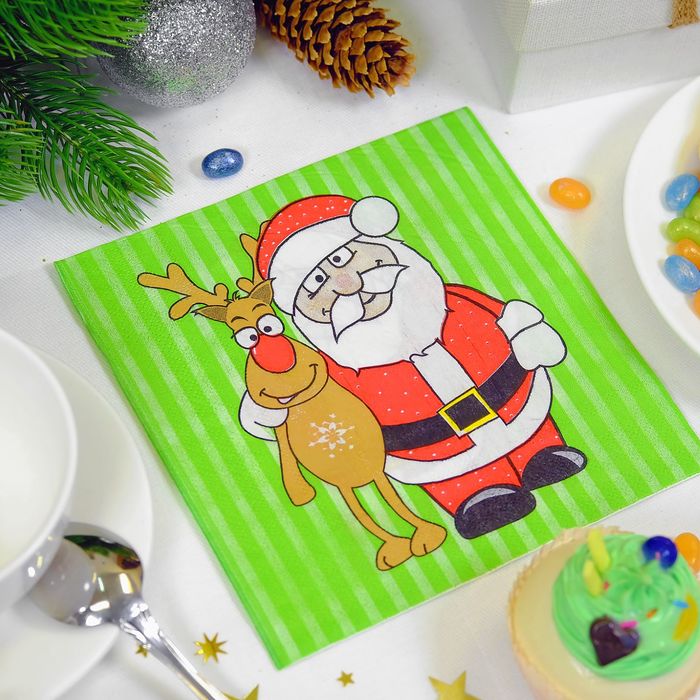 Салфетки бумажные "Дед Мороз", с оленем, (набор 20 шт), 33*33 см