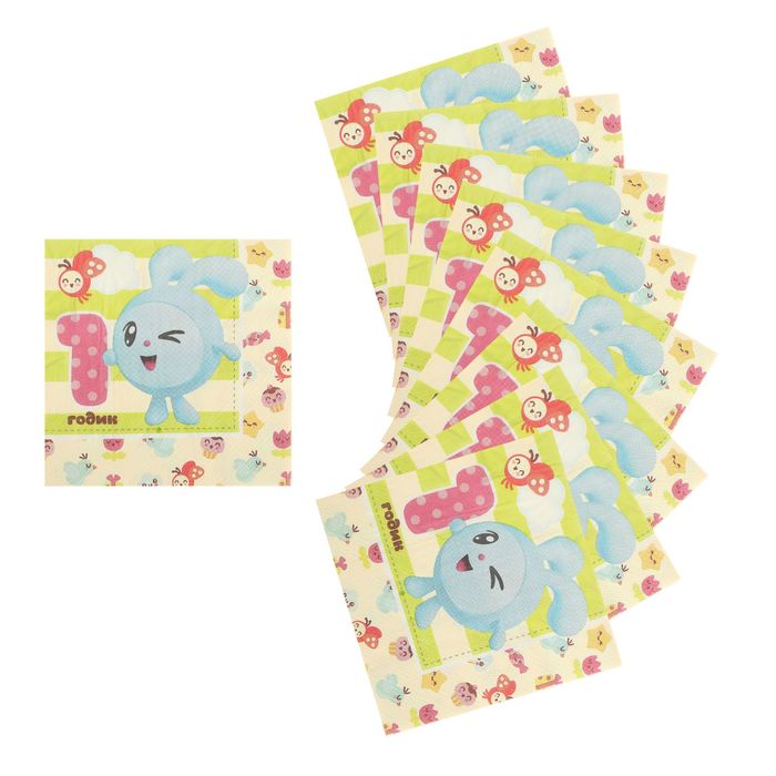 Салфетки бумажные "Малышарики" 1ГОДИК, 25*25 см (набор 12 шт)