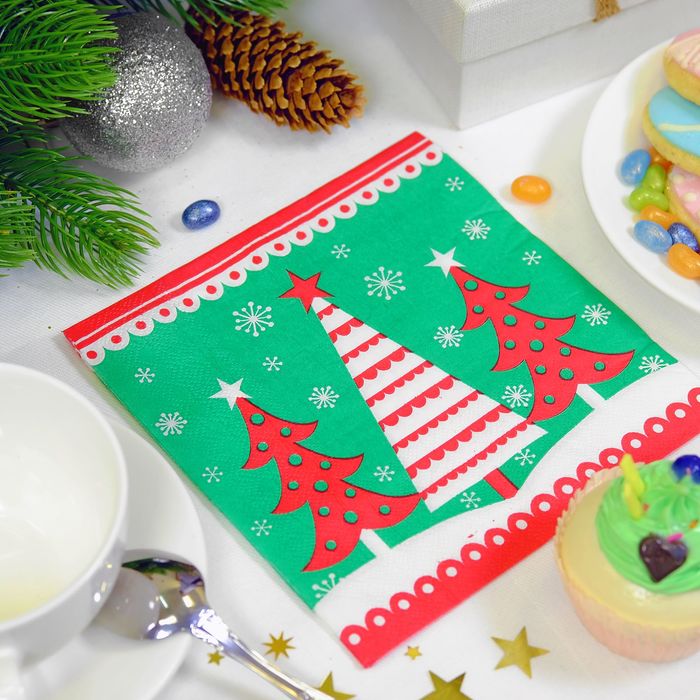 Салфетки бумажные "Новогодняя елка", (набор 20 шт), 33*33 см — то, что необходимо в любом доме. Ведь ни одно торжество не обходится без красивого оформления. Более того, такие салфетки послужат не только отличным украшением праздничного стола, но и станут полезными в быту.