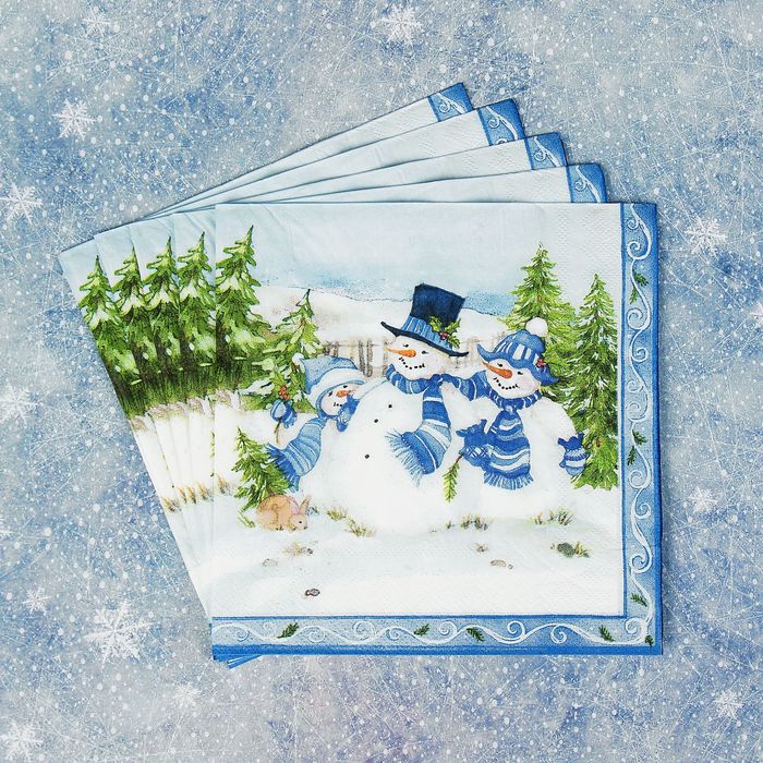 Салфетки бумажные "Снеговики", (набор 20 шт), 33*33 см