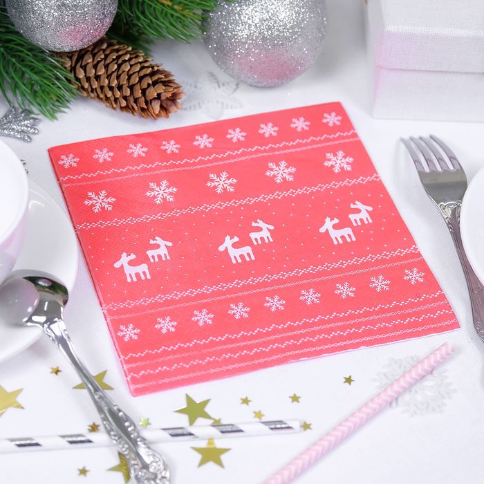 Салфетки бумажные "Снежинки" с оленями, (набор 20 шт), 33*33 см, цвет красный — то, что необходимо в любом доме. Ведь ни одно торжество не обходится без красивого оформления. Более того, такие салфетки послужат не только отличным украшением праздничного стола, но и станут полезными в быту.