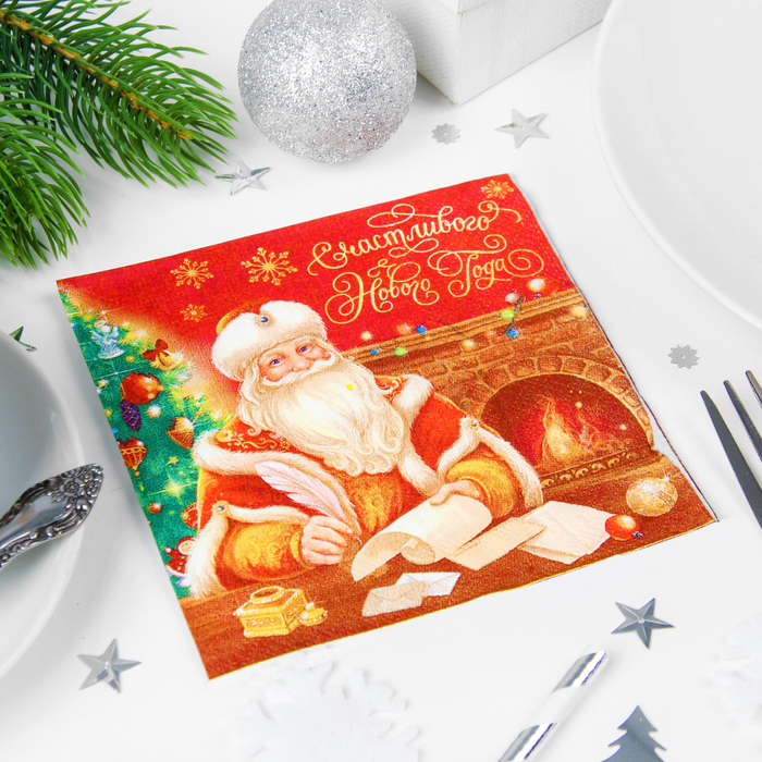 Салфетки " Счастливого Нового года" дед мороз 25*25см