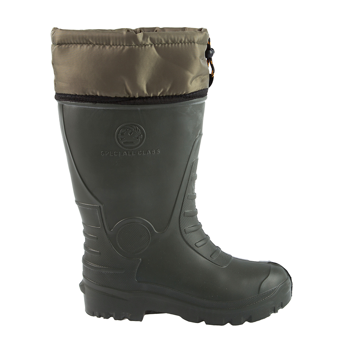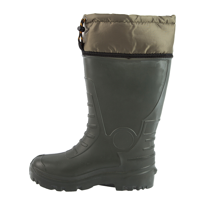 - Сапоги выполнены из лёгкого и упругого материала EVA. Он обладает высокой амортизацией, благодаря чему снижает нагрузку на ноги. Препятствует проникновению влаги внутрь, а потому не боится грязи и снега.