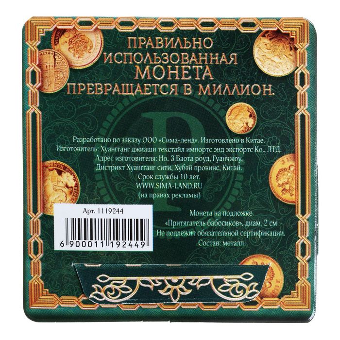 Счастливая монета "Притягатель бабосиков"