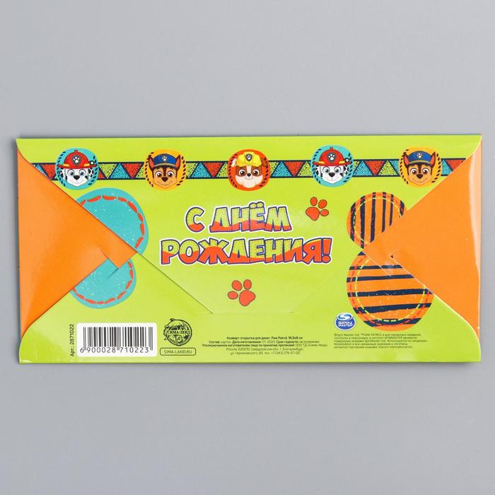 Невозможно представить нашу жизнь без праздников! Мы всегда ждём их и предвкушаем, обдумываем, как проведём памятный день, тщательно выбираем подарки и аксессуары, ведь именно они создают и поддерживают торжественный настрой. Щенячий патруль. Конверт-открытка для денег "С днем рождения!", с фольгой — это отличный выбор, который привнесёт атмосферу праздника в ваш дом!