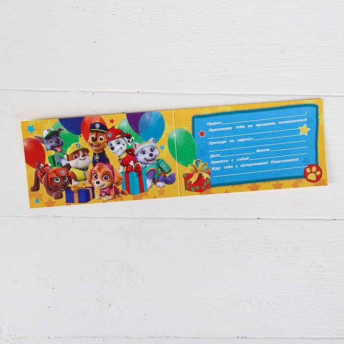 Щенячий патруль. Приглашение на праздник "Отличная команда!", 12х7 см
