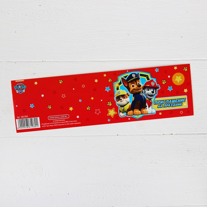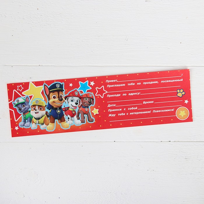 Щенячий патруль. Приглашение на праздник "Щенки-молодцы!", 12х7 см