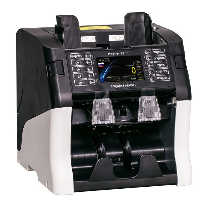 Magner 175F предназначен для подсчёта, сортировки по номиналу и проверки подлинности различных купюр в любом состоянии. Он имеет карман отбраковки, что даёт возможность работать с банкнотами непрерывно.