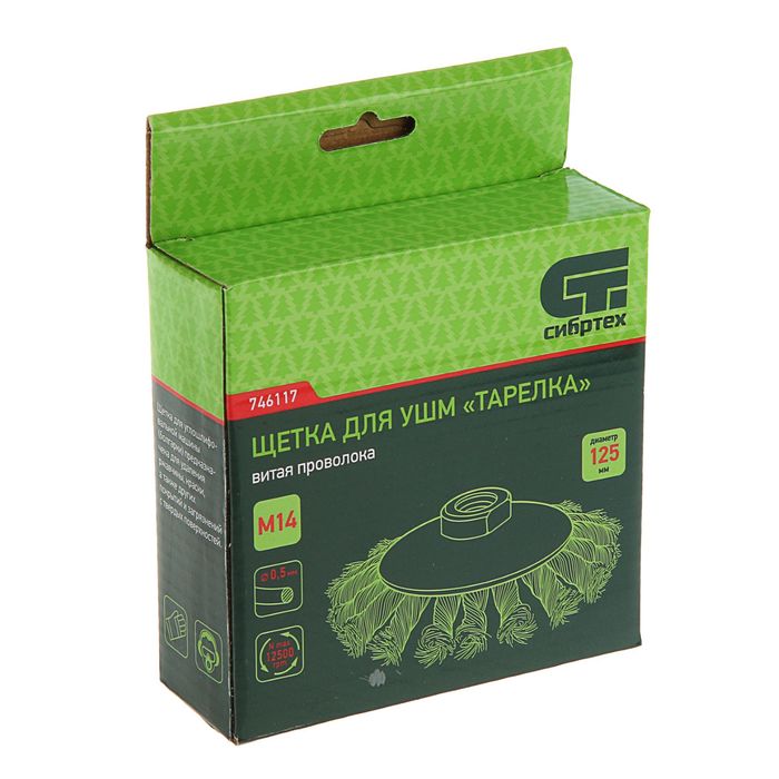 Щетка для УШМ "СИБРТЕХ", 125 мм, М14, "тарелка", крученая металлическая проволока