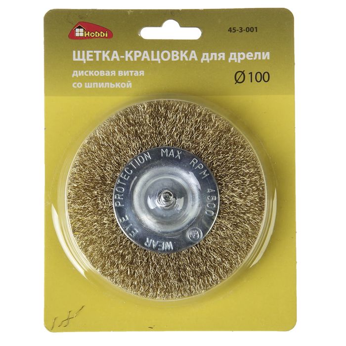 Щетка-крацовка со шпилькой для дрели Hobbi, круглая, диаметр 100 мм