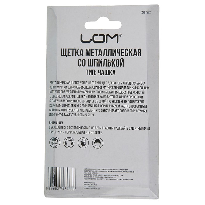 Щетка металлическая LOM для дрели со шпилькой "чашка", 65 мм