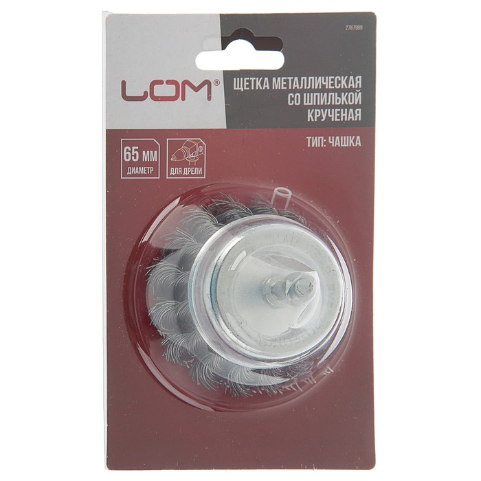 Щетка металлическая LOM для дрели со шпилькой, крученая "чашка", 65 мм