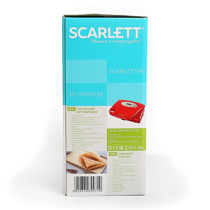 Сэндвичница Scarlett SC-TM11036, 750 Вт, красная