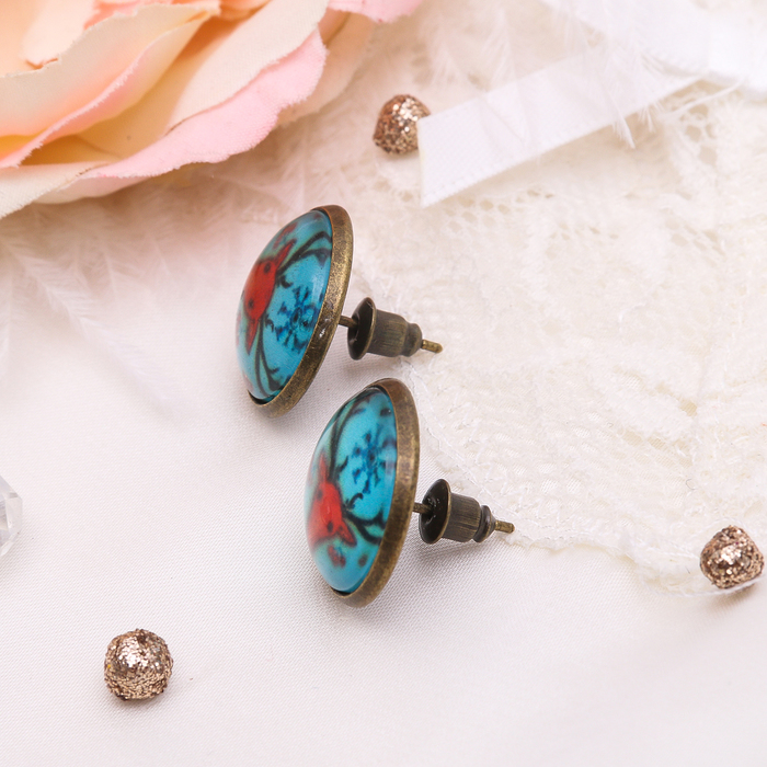 Серьги из стекла Candy олень, цвет коричнево-голубой в чернёном золоте