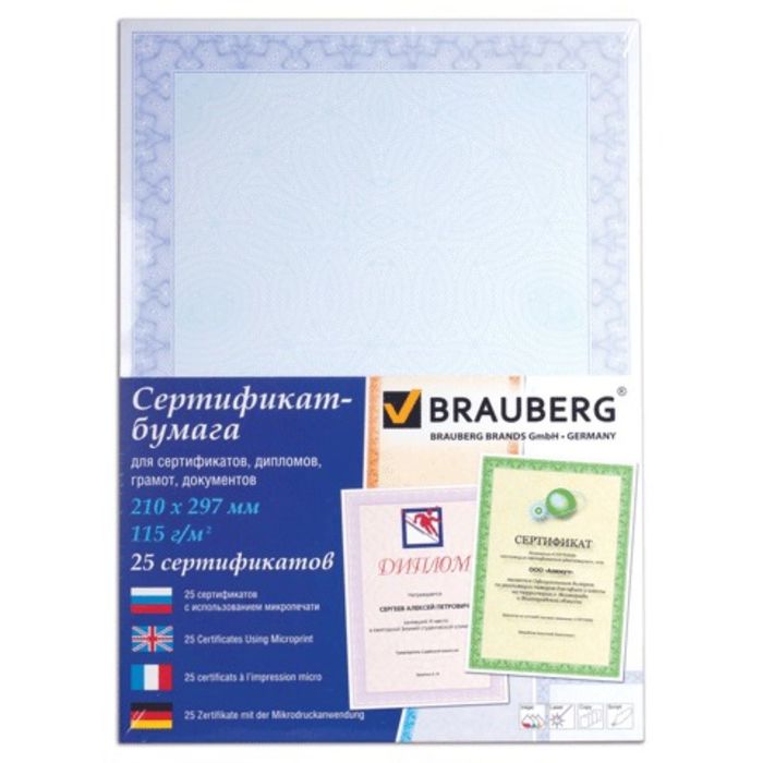Сертификат-бумага А4, 25 листов, 115 г/м, в суперобложке, Голубая сеточка
