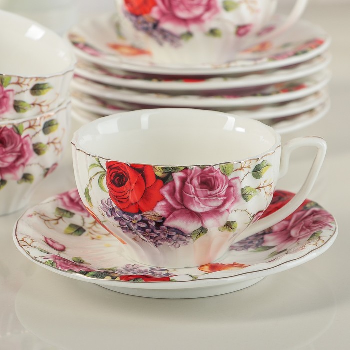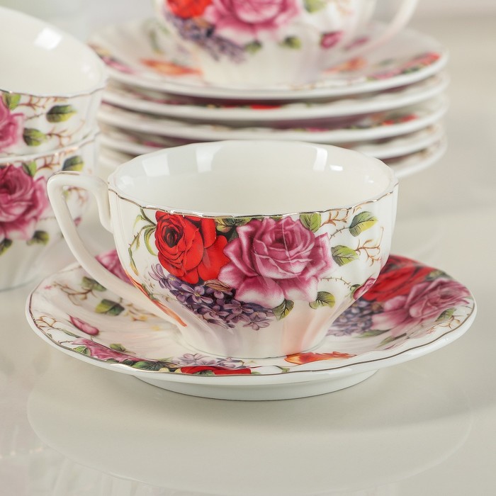 Сервиз чайный 12 пред. "Пышный букет": 6 чашек 180 мл, 6 блюдец