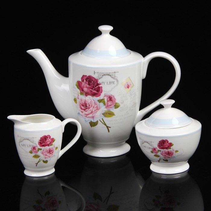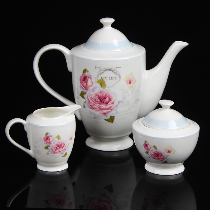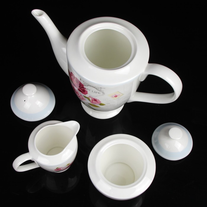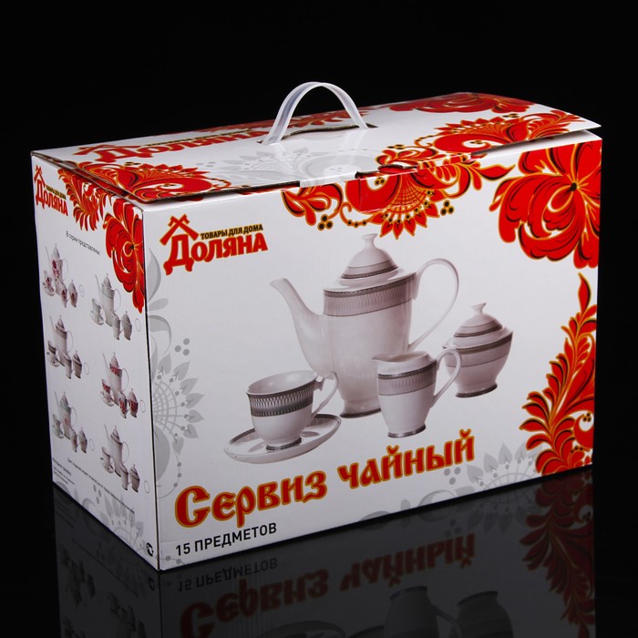 Сервиз чайный 15 пр "Реин": чайник 1 л, сахарница 300 мл, молочник 230, чайная пара 240 мл