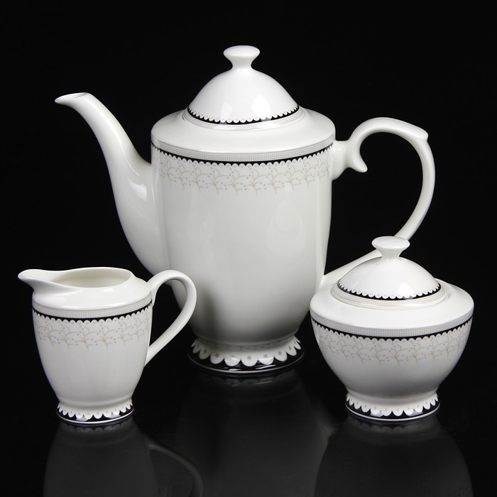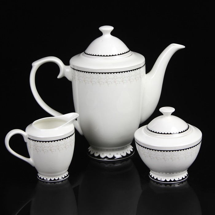 Сервиз чайный "Анет", 15 предметов: чайник 1 л, сахарница 300 мл, молочник 230 мл, чайная пара 240 мл