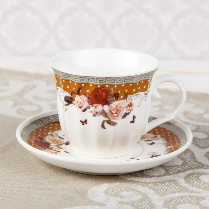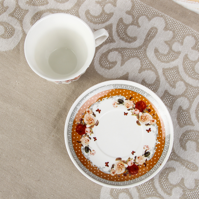 Сервиз чайный "Анфиса", 12 предметов: 6 чашек 180 мл, 6 блюдец 13 см, цвет коричневый МИКС УЦЕНКА