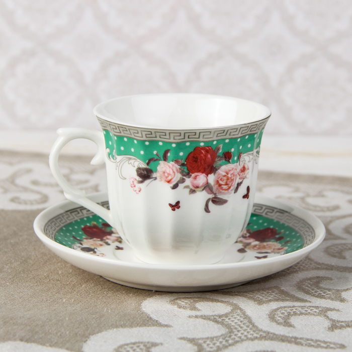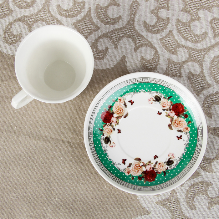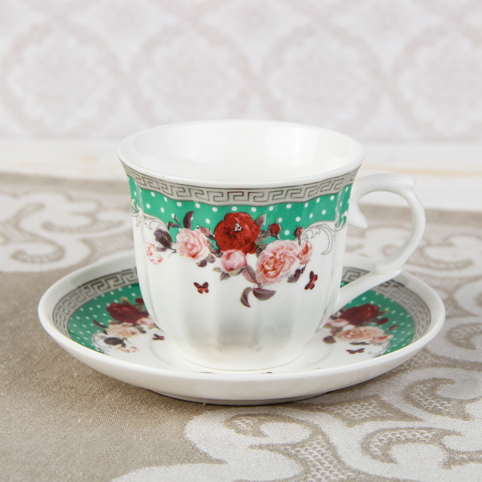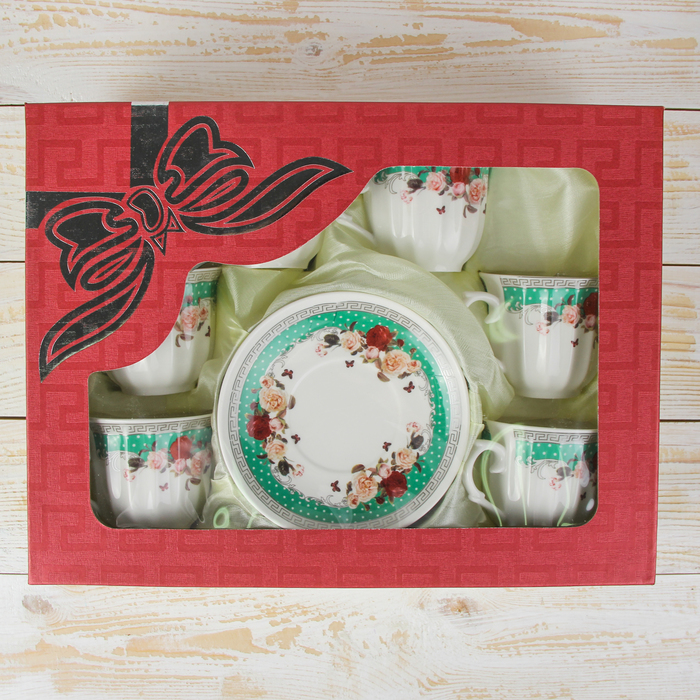 Сервиз чайный "Анфиса", 12 предметов: чашки d=8 см, блюдца d=13 см, цвет зеленый