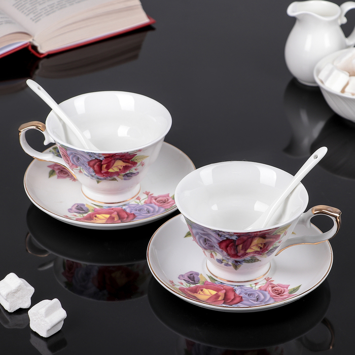Сервиз чайный "Азиза", 6 предметов: 2 чашки 250 мл, 2 ложки, 2 блюдца