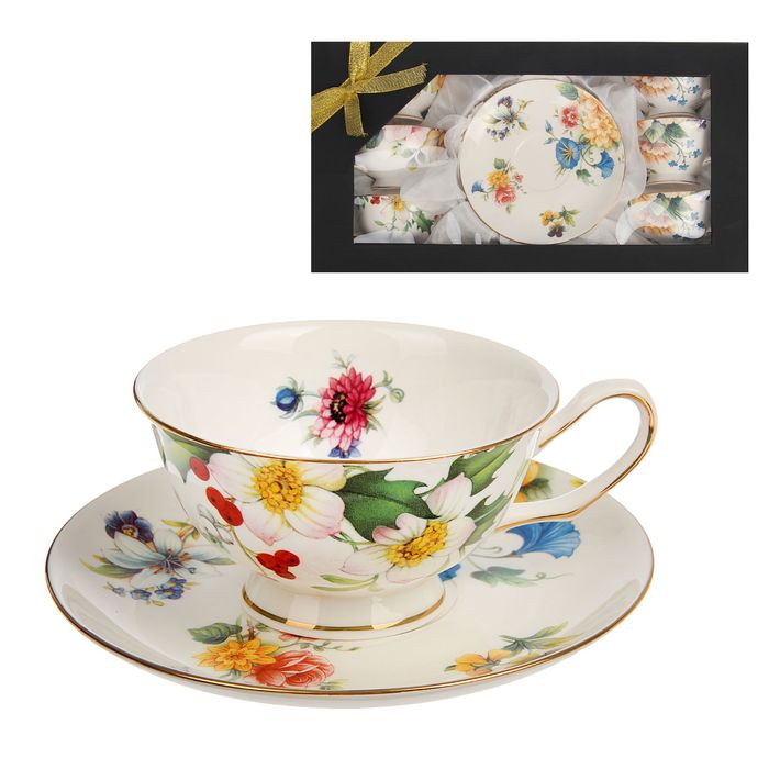 Сервиз чайный "Цветочная симфония", 12 предметов: 6 чашек 220 мл, 6 блюдец