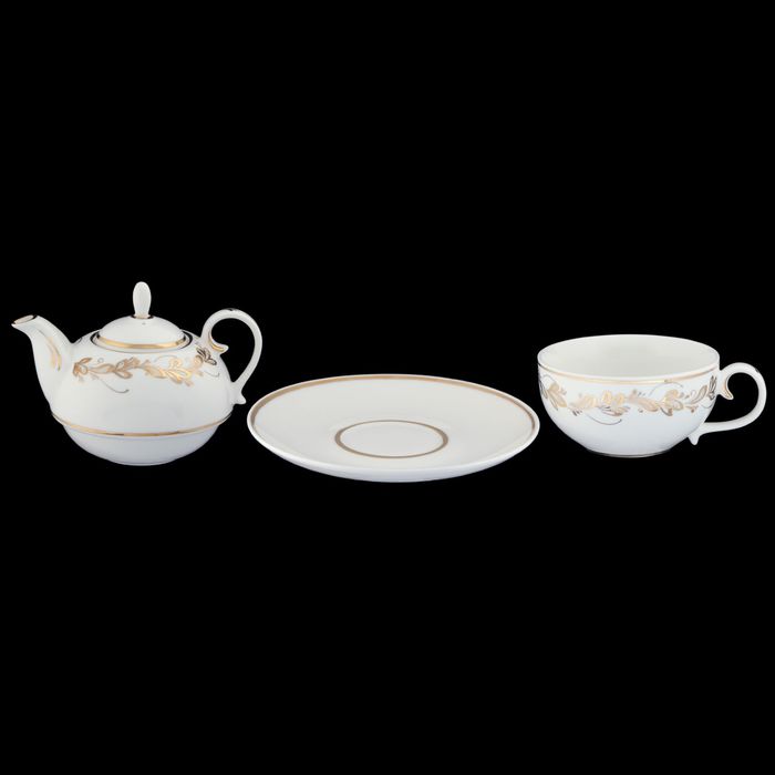 Сервиз чайный "Эгоист", 3 предмета: чайник 450 мл, чашка 350 мл, блюдце 16,5 см, золотая отводка