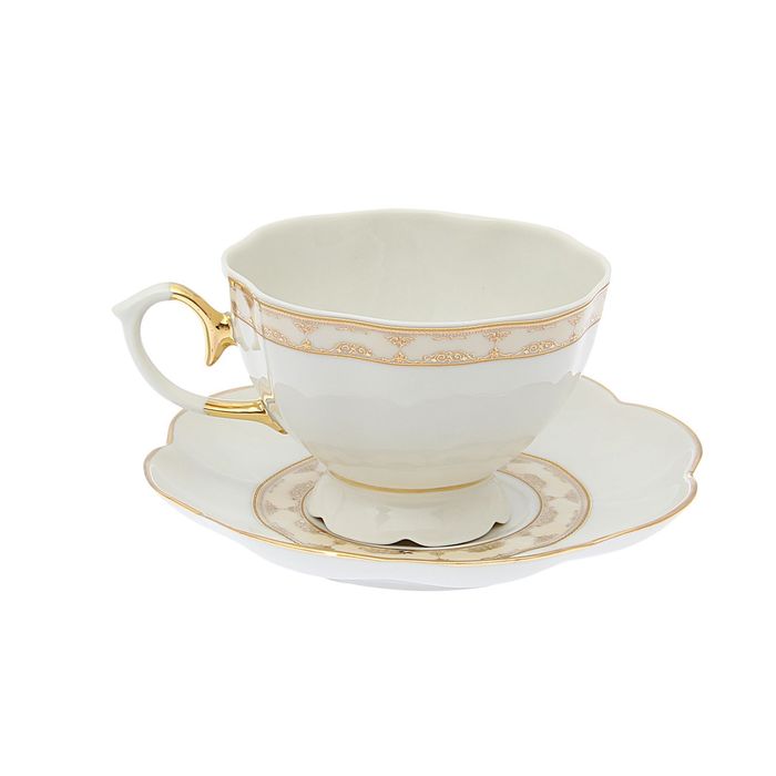 Сервиз чайный "Елена. Стильный" 15 предметов: 6 чашек чайных 250 мл, 6 блюдец чайных d=15 см чайник 1 л, сахарница 400 мл, сливочник 180 мл