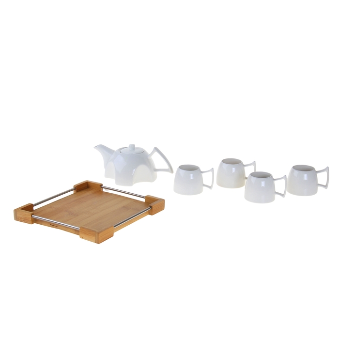 Сервиз чайный "Эстет", 5 предметов на подставке: 4 чашки 180 мл, чайник 800 мл
