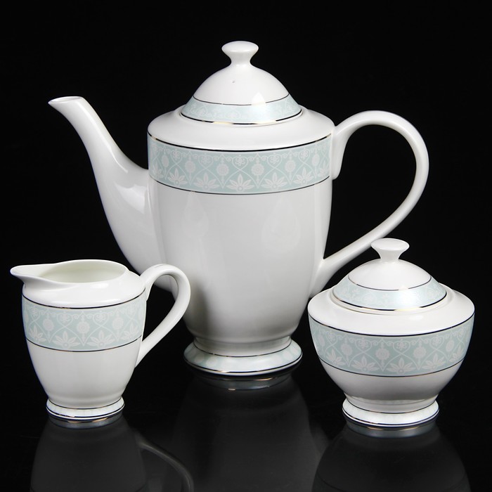 Сервиз чайный "Флорет", 15 предметов: чайник 1 л, сахарница 300 мл, молочник 230 мл, 6 чайных пар 240 мл