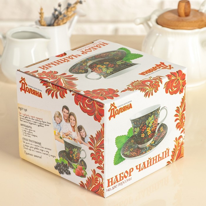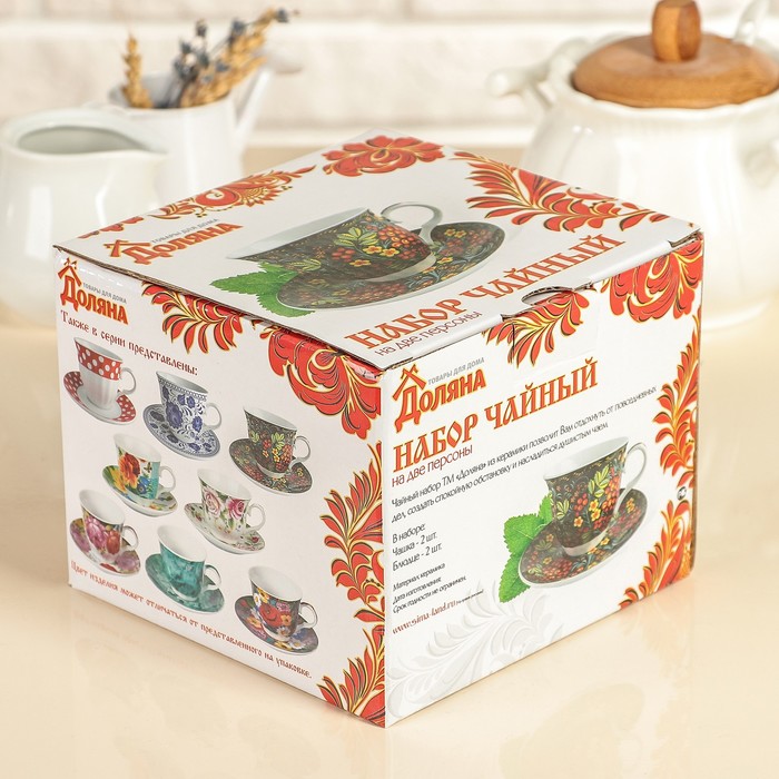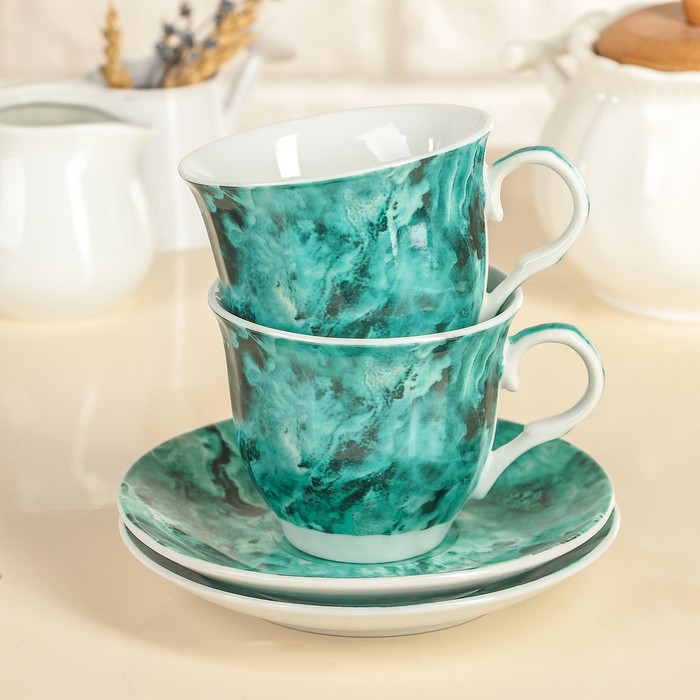 Сервиз чайный "Малахит", 4 предмета: 2 чашки 210 мл, 2 блюдца