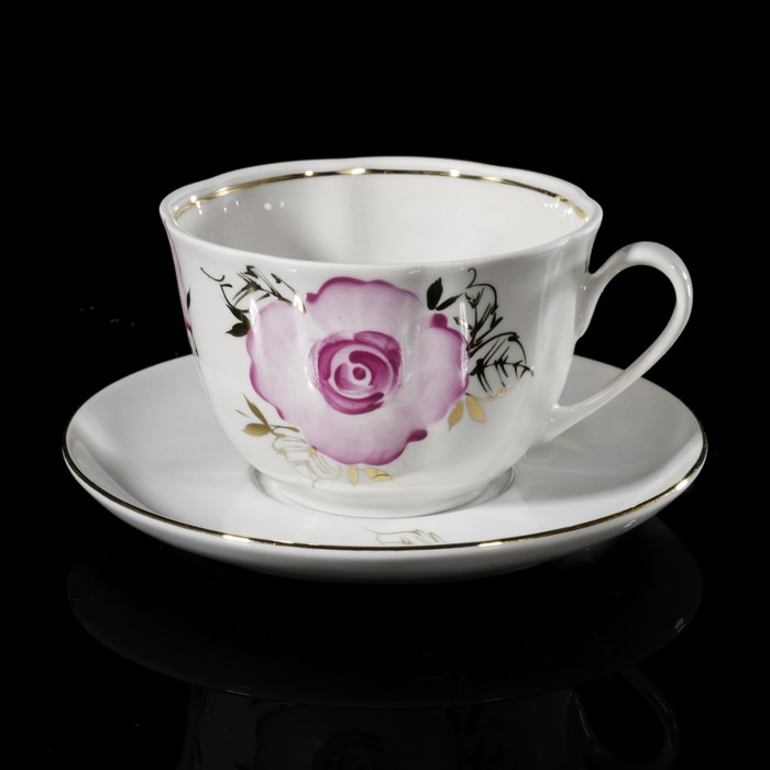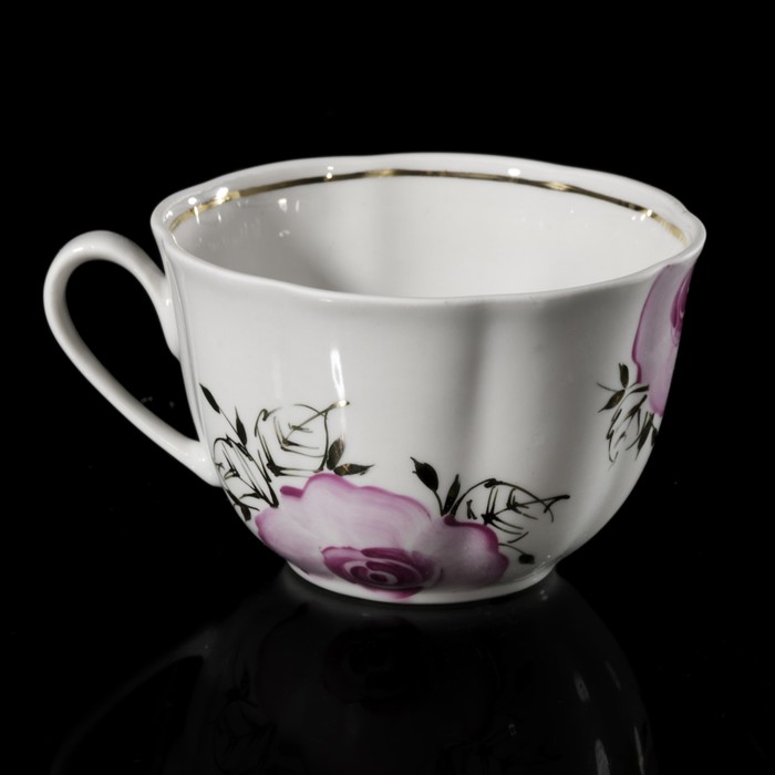 Сервиз чайный на 6 персон "Тюльпан. Розовые розы", чашки 240 мл, отводка золотом