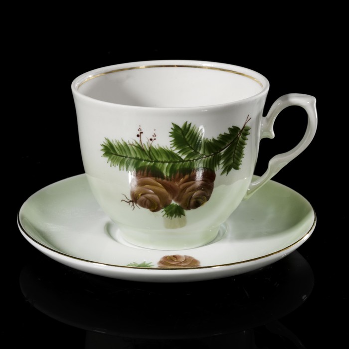 Сервиз чайный на 6 персон "Зимний день. Кедровая ветка", чашки 300 мл, отводка золотом