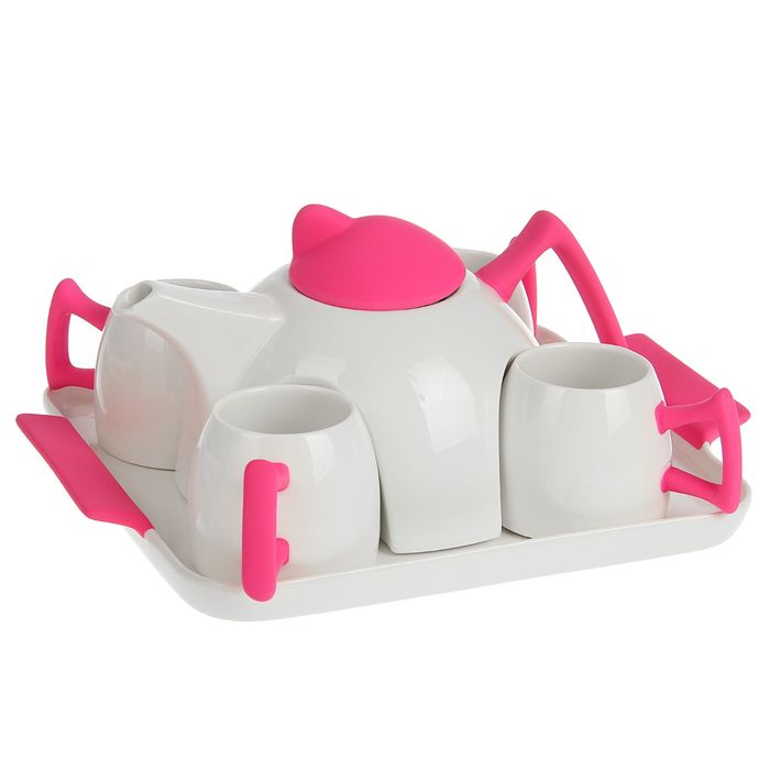 Сервиз чайный на подносе 5 пред "Пинк" чайник 750 мл, кружка 100 мл, декор силикон
