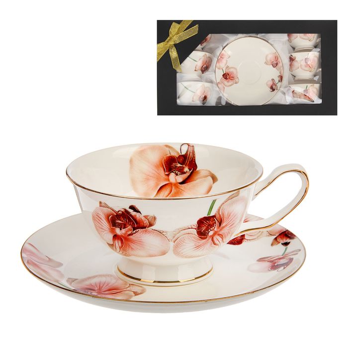 Сервиз чайный "Орхидея", 12 предметов: 6 чашек 220 мл, 6 блюдец
