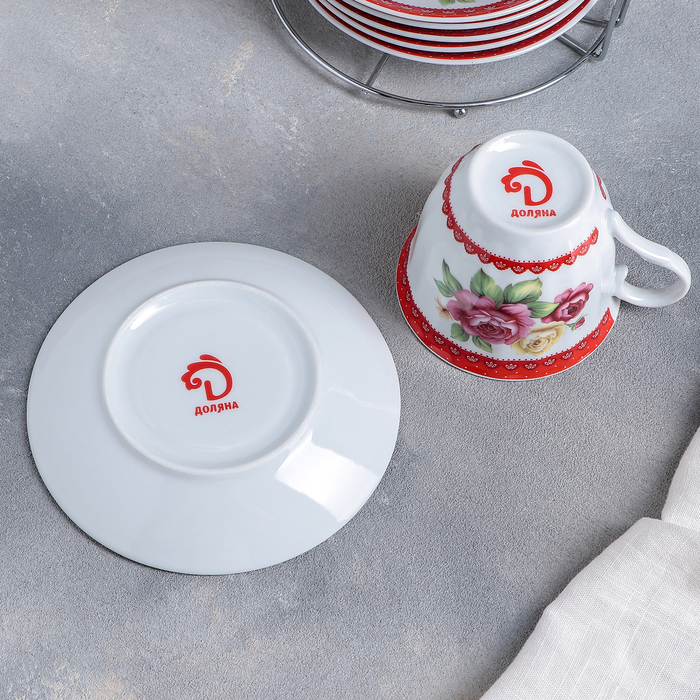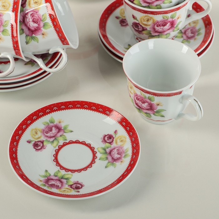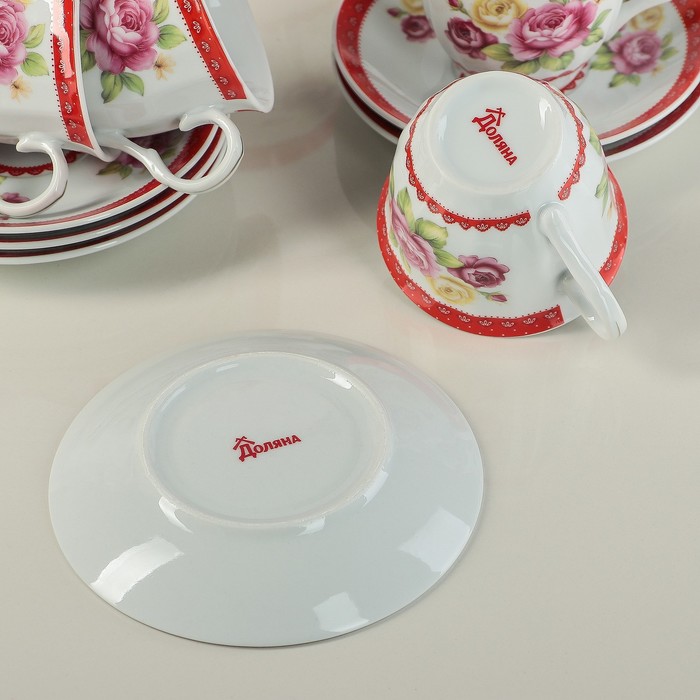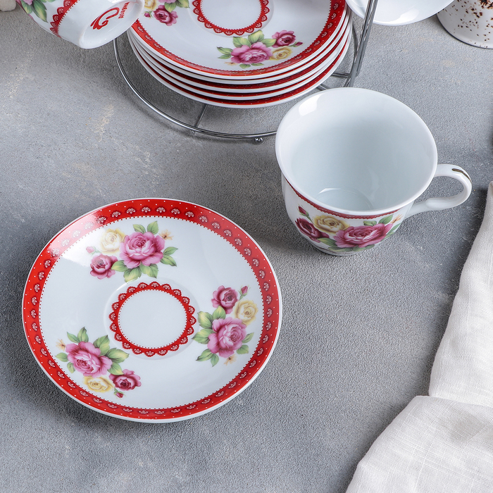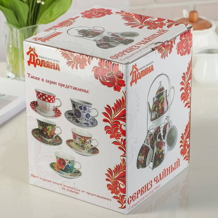 Сервиз чайный "Первый цвет", 13 предметов: чайник 1 л, 6 чашек 210 мл, 6 блюдец