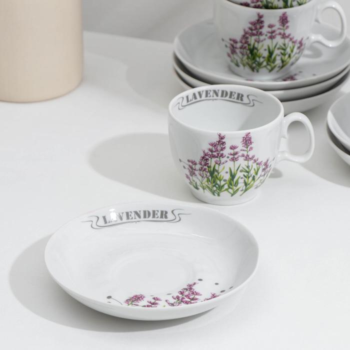 Сервиз чайный "Реванш. Лаванда", 14 предметов: чайник 750 мл, сахарница 350 мл, 6 блюдец 15 см, 6 чашек чайных 250 мл