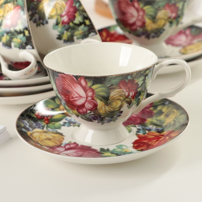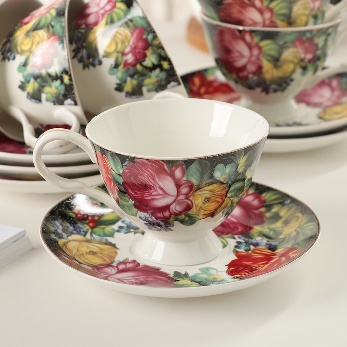 Сервиз чайный "Роковая роза", 12 предметов: 6 чашек 240 мл, 6 блюдец