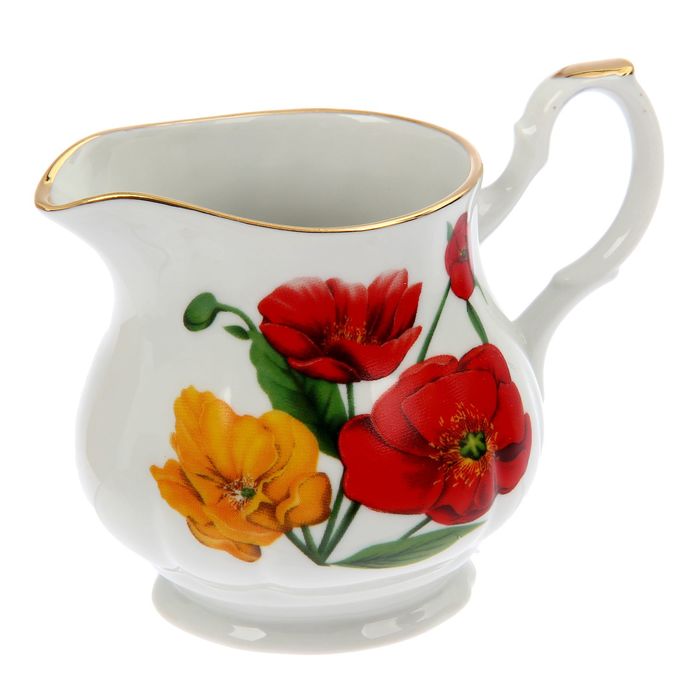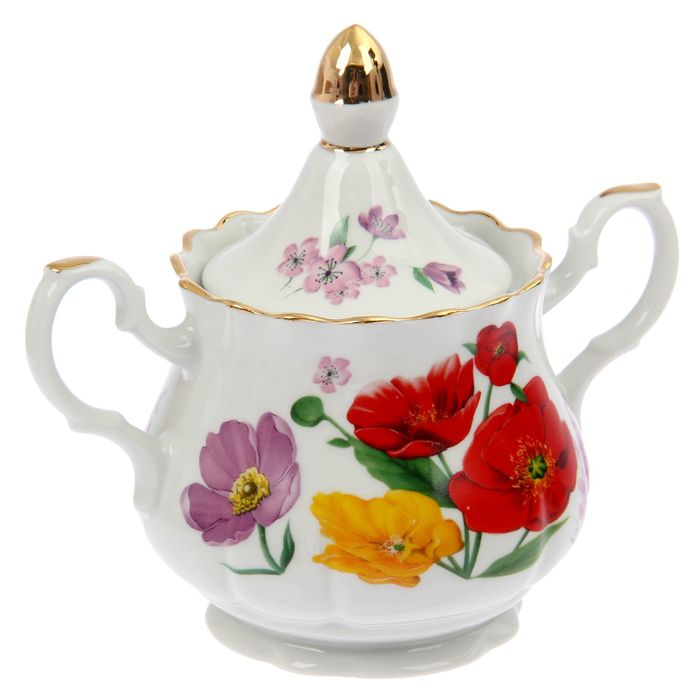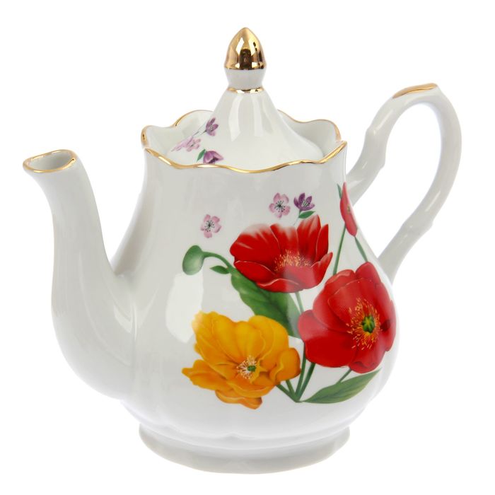 Сервиз чайный "Романс. Полевые маки", 27 предметов: чайник 1,75 л, сахарница 550 мл, сливочник чайный 350 мл, 12 чашек чайных 250 мл, 12 блюдец 15 см