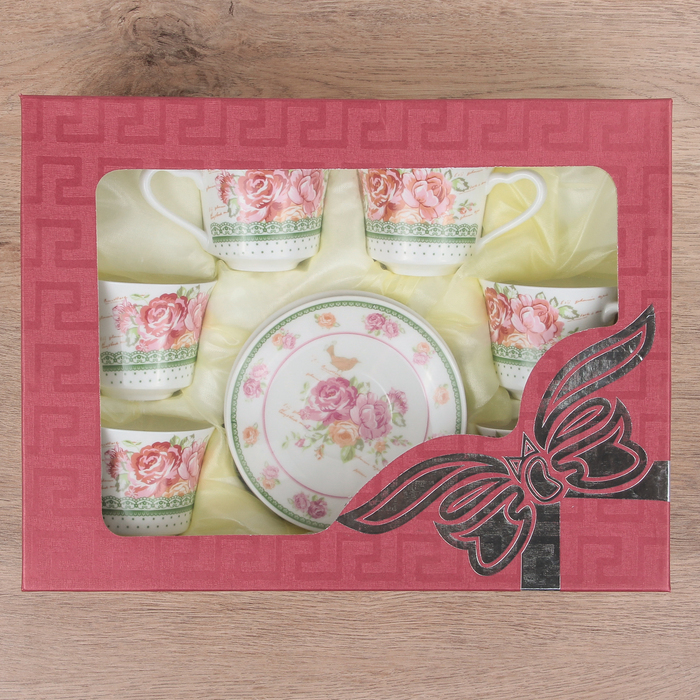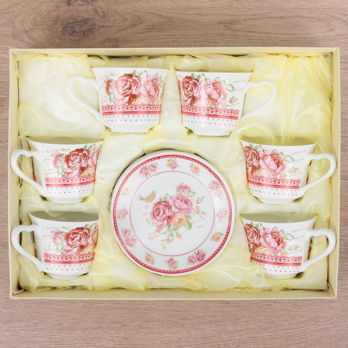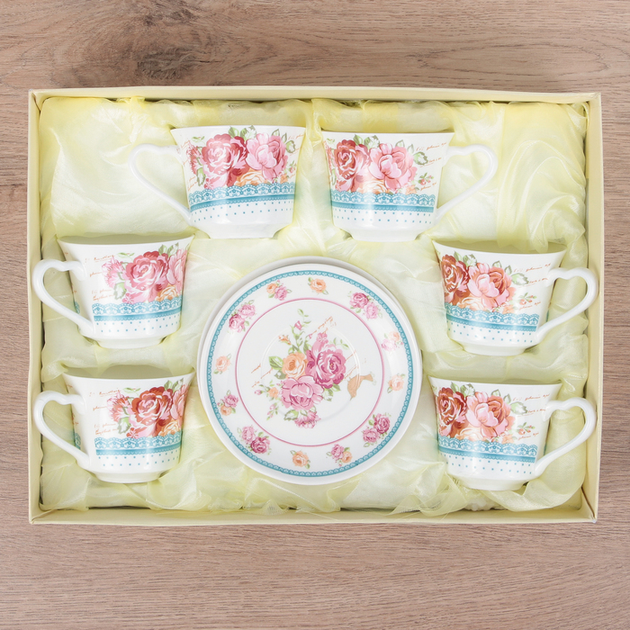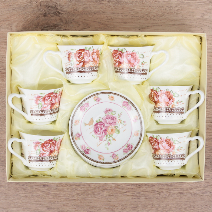 Сервиз чайный "Розали", 12 предметов: кружки 10,5х8х6,5 см 6 шт, блюдца 6 шт 12,7 см, цвет МИКС