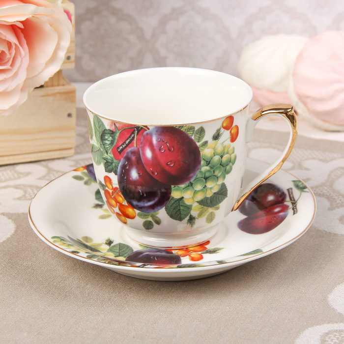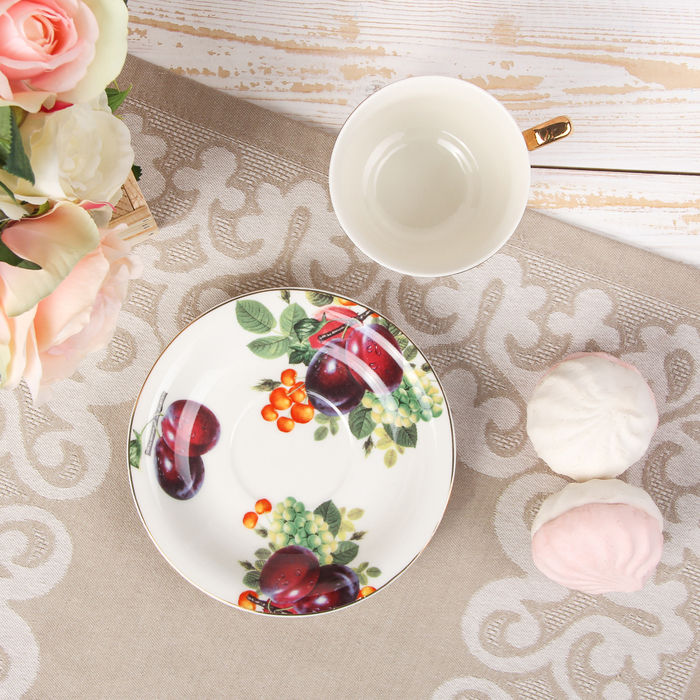 Сервиз чайный "Слива", 4 предмета: 2 чашки 180 мл, 2 блюдца