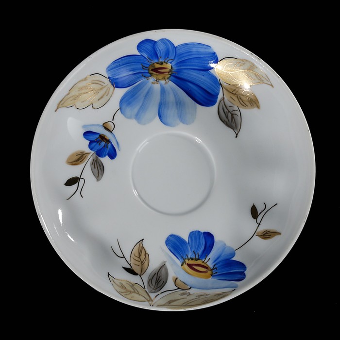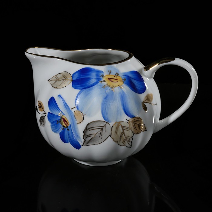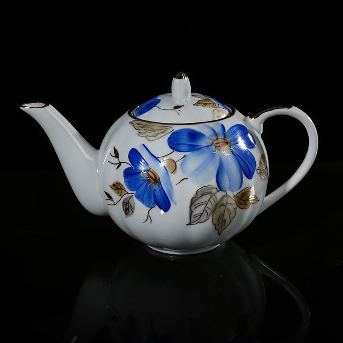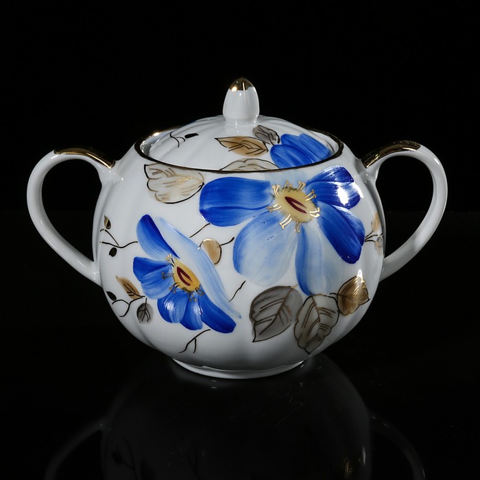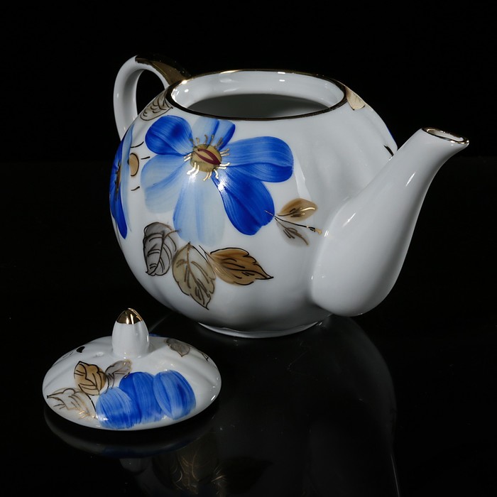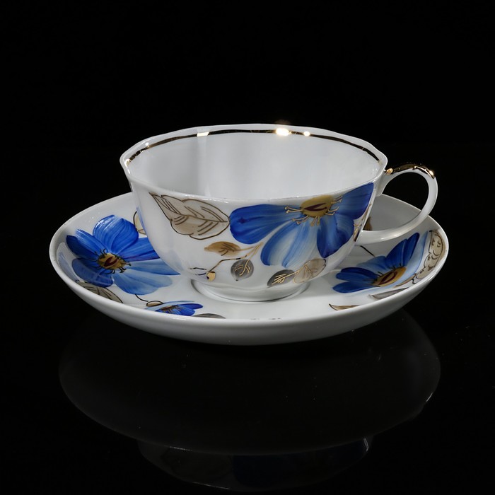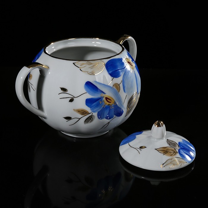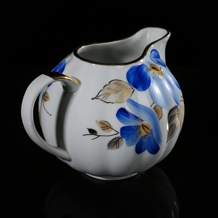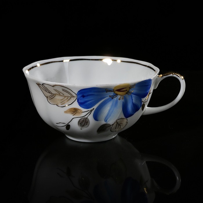 Сервиз чайный "Тюльпан. Синий цветок", 15 предметов: чайник 750 мл, сахарница 600 мл, сливочник 300 мл, 6 чашек 220 мл, 6 блюдец 15 см