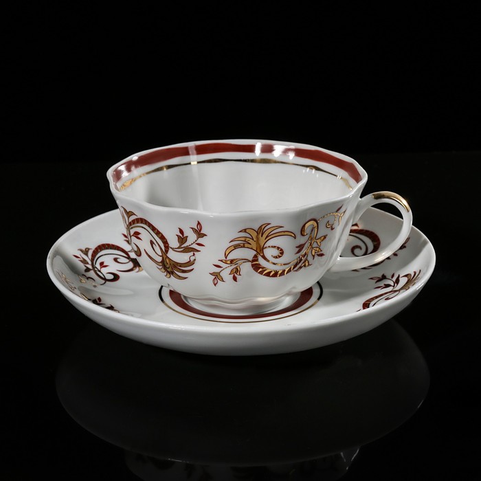Сервиз чайный "Тюльпан. Золотое кружево", 21 предмет: чайник 750 мл, сахарница 600 мл, сливочник 500 мл, 6 чашек 220 мл, 6 блюдец 15 см, 6 тарелок 17,5 см