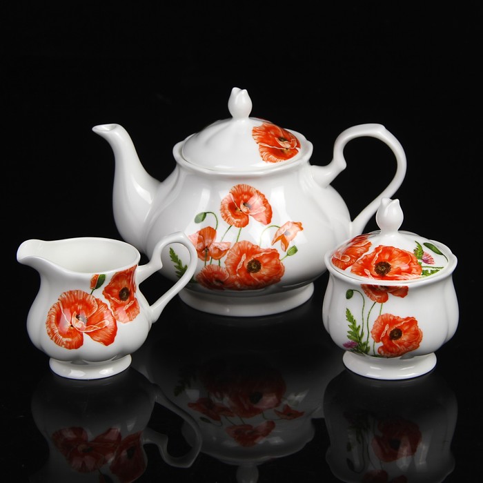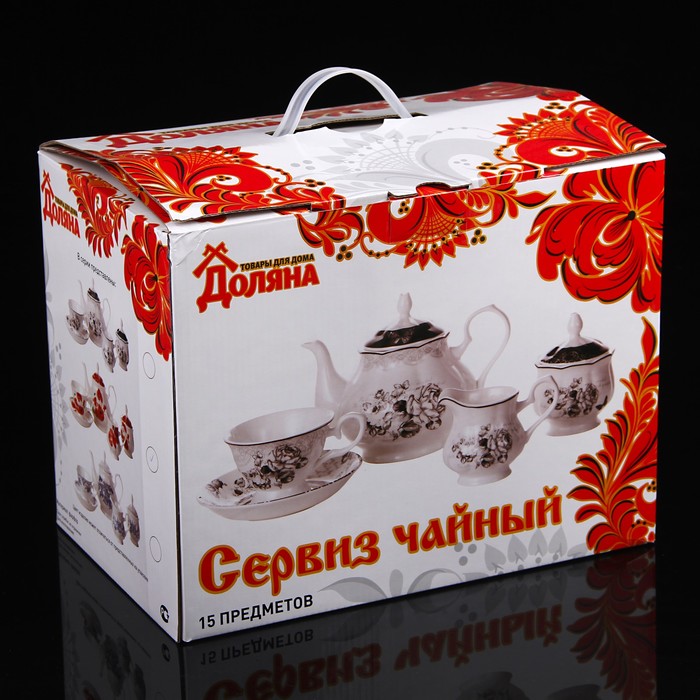 Сервиз чайный "Валери", 15 предметов: чайник 0,83 л, сахарница 230 мл, молочник 200 мл, 6 чайных пар 230 мл