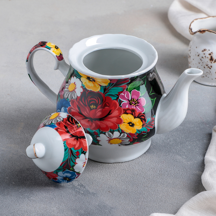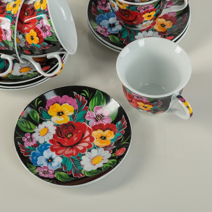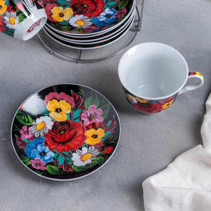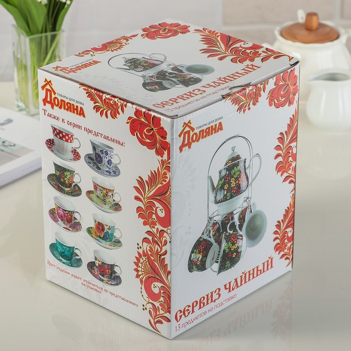Сервиз чайный "Жостово", 13 предметов: чайник 1 л, 6 чашек 210 мл, 6 блюдец
