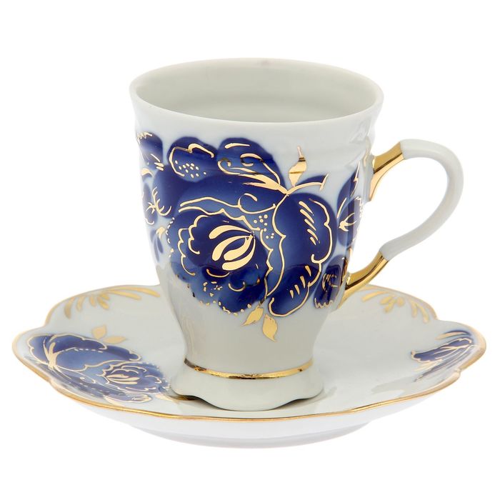 Сервиз кофейный "Мари", 14 предметов: кофейник 850 мл, сахарница 350 мл, 6 чашек 110 мл, 6 блюдец 12 см, ручная роспись, отводка золотом