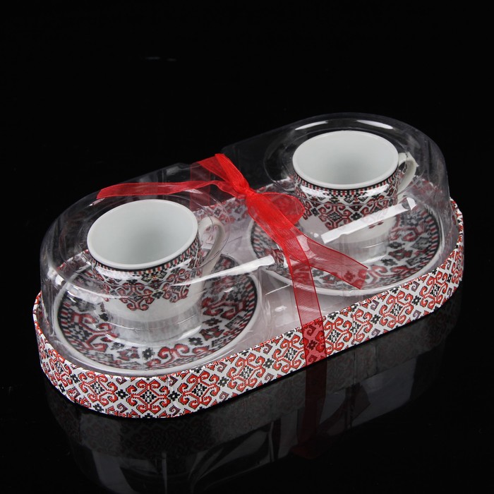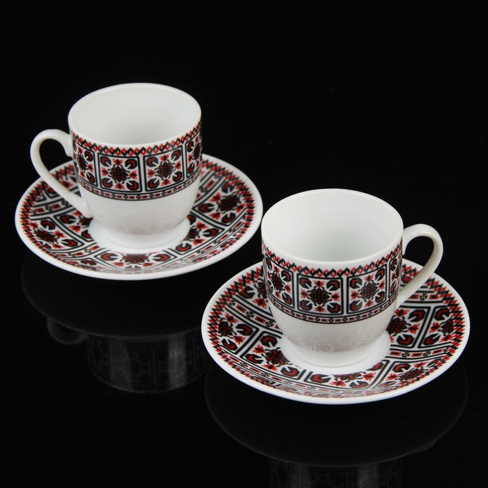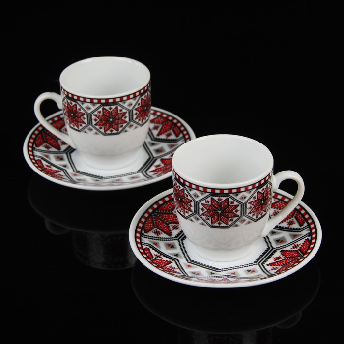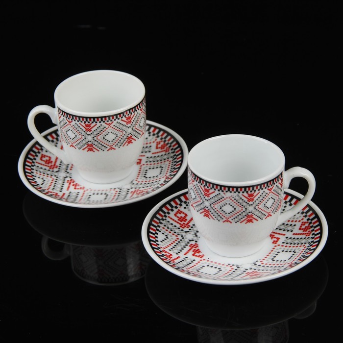 Сервиз кофейный "Славянка", 4 предмета: 2 чашки 90 мл, 2 блюдца 10,5 см, цвета МИКС