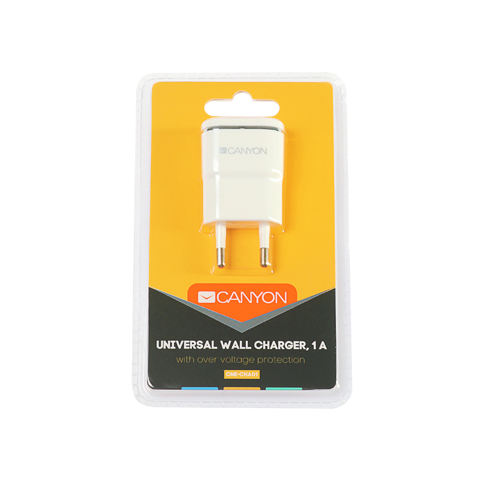 Сетевое зарядное устройство Canyon CNE-CHA01WS, 1А, белое